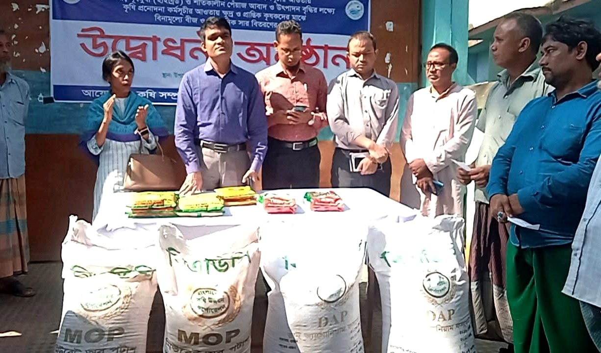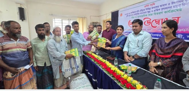 হাকিমপুরে ক্ষুদ্র ও প্রান্তিক কৃষকদের মাঝে বিনামূল্যে বীজ ও সার বিতরণ