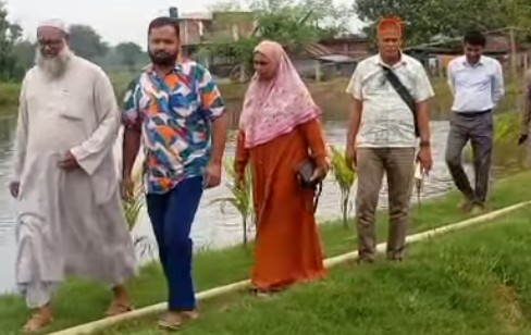 পাঁচবিবিতে পুকুর পরিদর্শনে জেলা মৎস্য কর্মকর্তা