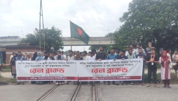 উত্তরবঙ্গ-ঢাকা রেলপথ আটকে দিলেন রবীন্দ্র বিশ্ববিদ্যালয়ের শিক্ষার্থীরা
