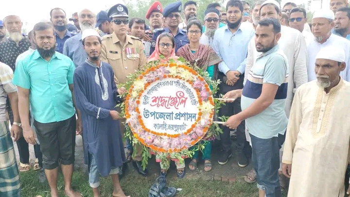 ছবিঃ সীমান্তের আওয়াজ কালাই থেকে মুনছুর রহমানঃ মঙ্গলবার, ৫ আগস্ট ২০২৫ জয়পুরহাটের কালাইয়ে জুলাই গণঅভ্যুত্থান ২০২৪ এ কালাই উপজেলার শহিদ