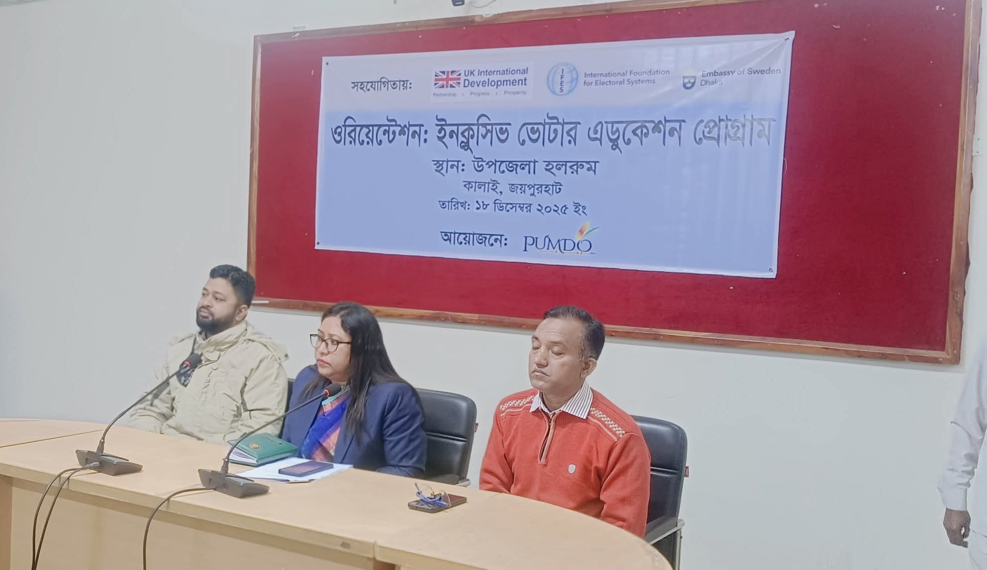 কালাই উপজেলায় ইনক্লুসিভ ভোটার এডুকেশন প্রকল্পের ওরিয়েন্টেশন অনুষ্ঠিত
