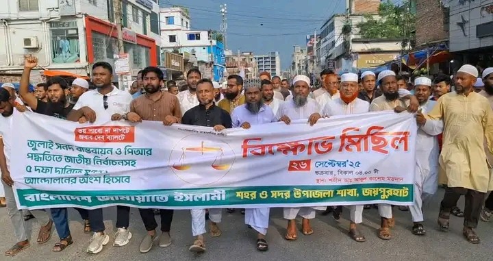 জয়পুরহাটে ৫ দফা দাবিতে জামায়াতের বিক্ষোভ ও সমাবেশ