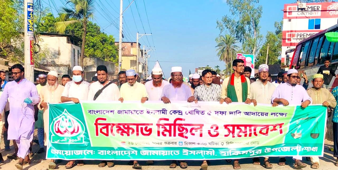 হাকিমপুরে জামায়াতের কেন্দ্রীয় ৫ দফা দাবি আদায়ের লক্ষ্য বিক্ষোভ মিছিল সমাবেশ অনুষ্ঠিত