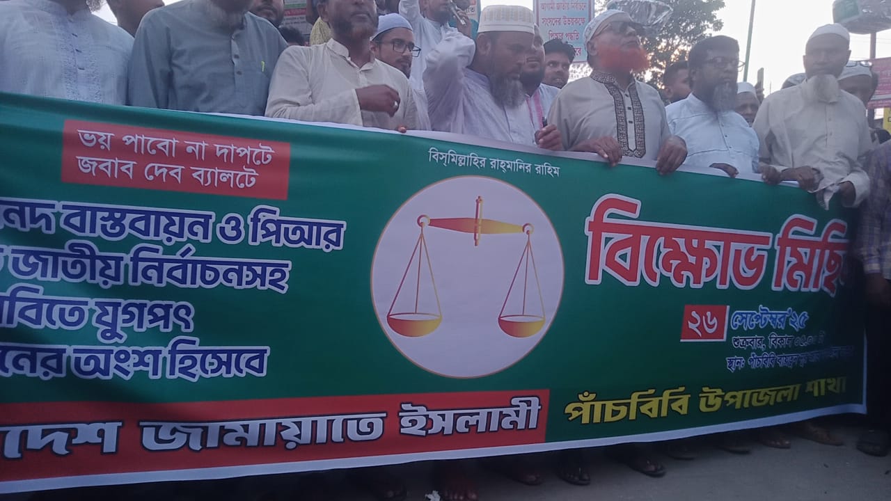 পাঁচবিবিতে পিআর পদ্ধতির নির্বাচনের দাবিতে বিক্ষোভ মিছিল হয়েছে