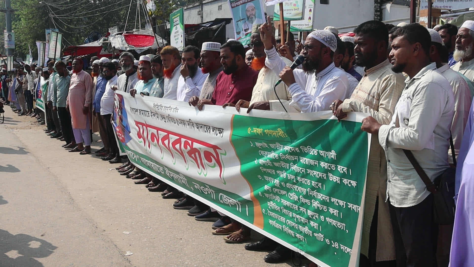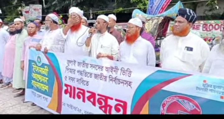 ৫ দফা দাবিতে নওগাঁয় জামায়াতের মানববন্ধন