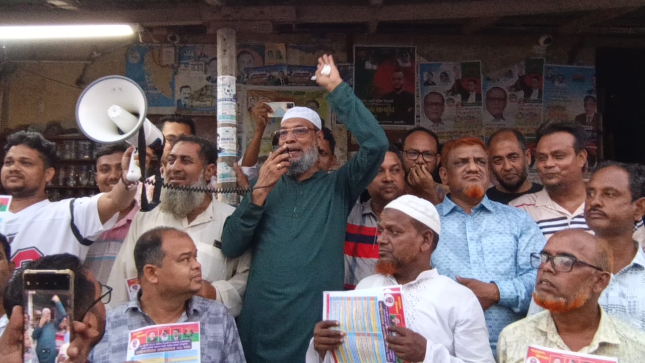 সাপাহারে ৩১ দফা বাস্তবায়নে ডাঃ সালেক চৌধুরীর পক্ষে গণসংযোগ ও লিফলেট বিতরণ