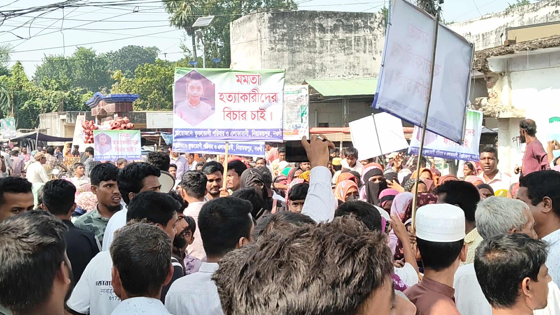 নওগাঁয় শিশু মমতা হত্যার বিচারের দাবিতে এলাকাবাসীর মানববন্ধন